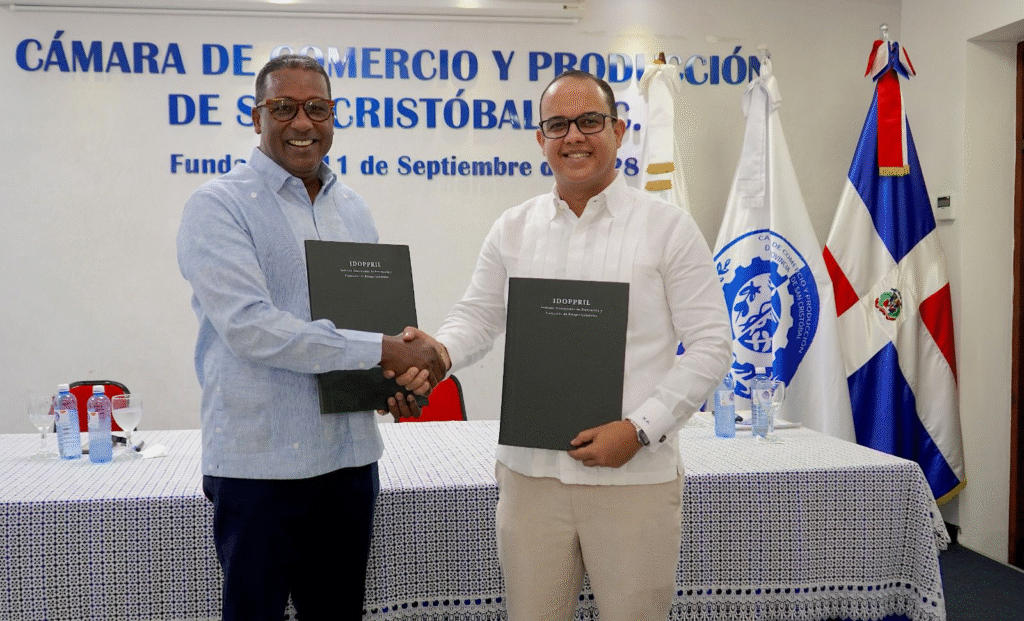 San Cristóbal– El Instituto Dominicano de Prevención y Protección de Riesgos Laborales (IDOPPRIL) y la Cámara de Comercio y Producción de San Cristóbal suscribiendo un convenio para desarrollar acciones conjuntas orientadas a promover la seguridad ocupacional en las empresas de esta provincia.