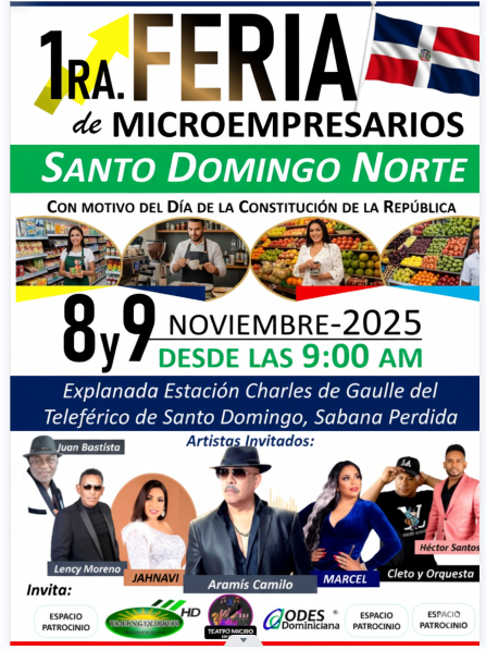 Santo Domingo Norte, R.D. – Este sábado 8 y domingo 9 de noviembre de 2025, se celebrará la Primera Feria de Microempresarios de Santo Domingo Norte, un evento que reunirá a emprendedores, comerciantes y productores locales con el propósito de promover el desarrollo económico y la innovación en el municipio.